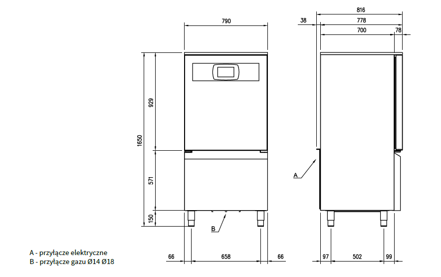 Wymiary mm: 790 x 778 x 1630