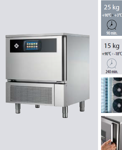 Infinity to wielofunkcyjna schładzarko-zamrażarka szokowa o wysokiej mocy i oszczędnej eksploatacji. Pomaga zaspokajać oczekiwania nawet najbardziej wymagających klientów, zachować jakość potraw oraz świeżość i bezpieczeństwo zdrowotne surowców. Niezmienna jakość potraw oznacza niezawodne usługi. Dzięki możliwości przechowywania chłodzonej lub mrożonej żywności przez dłuższy czas, użytkownik obniża poziom strat. Wszystkie typy oferowanych schładzarko- zamrażarek szokowych umożliwiają pracę w trybie chłodzenia lub zamrażania, a po zakończeniu cyklu pracy przełączają się na tryb utrzymywania. Żywność przechowywana w schładzarko zamrażarkach szokowych umieszczona jest w pojemnikach gastronomicznych o głębokości 40 lub 65 mm w zależności od typu urządzenia. W przypadku żywności o większej pojemności do kontroli temperatury można wykorzystać wbijaną sondę, która zapewnia wyłączenie schładzarko- zamrażarki po osiągnięciu odpowiedniej temperatury rdzenia potrawy. Masywna konstrukcja i wykonanie ze stali nierdzewnej gwarantują długą żywotność urządzenia. Wentylatory o maksymalnych rozmiarach i przemyślana konstrukcja zasuw umożliwia bezproblemową cyrkulację powietrza zapewniając wysokiej jakości szybkie schładzanie i zamrażanie potraw.